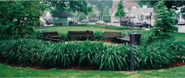 In 2004, Phase One was begun. The east side of the park became the focus by removing the bus shelter and accenting the new garden space with an ornamental fence and beautiful stone pillars built from stone from Wellesley. This was accomplished in three phases with many people throughout town involved in the effort. Phase Four continues with a similar focus on the west end. This work has been done with the approval of the Natural Resources Commission as owners of the land.